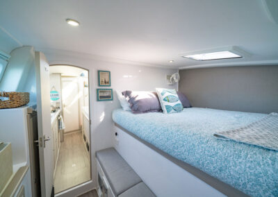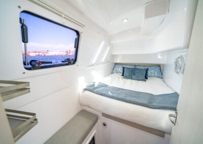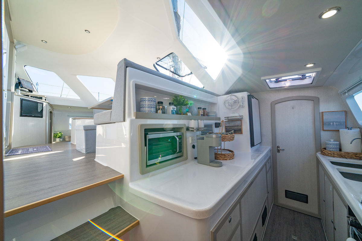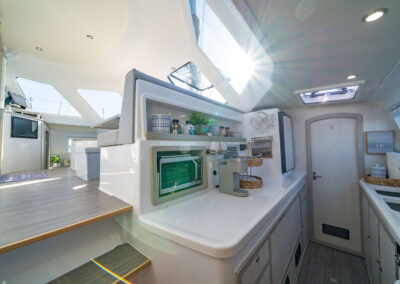The newer Seawind 1160 features significantly more interior volume than its predecessors, thanks to increased hull beam, raised freeboard, and redesigned saloon windows. With generous headroom (up to 6’5″), wider cabin doors, and level flooring throughout the hulls, it delivers a noticeably more comfortable onboard experience. Whether you’re relaxing at anchor or underway, this model strikes the perfect balance between livability and performance in a 39 ft platform.